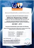 RE G I STRATION C E RTI F ICATE Thts document certifies thot the odministration systems of Adhesive Dispensing Limited 55 Abbey Court, Alston Drive, Bradwell Abbey, Milton Keynes MKl3 gHB hove been ossessed ond opproyed by QAS lnternotionol to the following monogement systems, stondords ond guidelines: tSO 9001 : 2015 The opproved odministrotion systems opply to the following: Adhesive Dispensing Limited based in Milton Keynes, provides provision of fluid handling solutions to manufacturing companies.