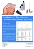 The FlexiSqueeze ™ dispensing bottle is an ideal way to apply watery liquids, glues, paints and inks without drips, mess or waste. Liquid is simply put into the bottle and a cap is attached. This cap allows a nozzle to be twisted on ready to apply liquid to card, paper, plastics and metals. You have a selection of different sized dispense tips. All are semi-­‐soft plastic and are not sharp. These can be cut to length if required. Use bigger hole tips for thicker glues and pastes and small hole types for watery liquids. Use these handy bottle dispensers for art and craft projects, card making, repair work, classroom projects, decorating, garage and workshop, henna inks and many, many more. Tip shields push over the dispense tip when its on the bottle to provide a seal ensuring glues do not dry out as quick when the tip is left for periods of time. Bottle caps twist onto the bottle when the tip is removed to provide an airtight seal for safe storage. Order FlexiSqueeze ™ securely online or by phone for a next day delivery. FlexiSqueeze™ Glue Dispenser The simple way to safely apply glues, paints and inks FlexiSqueeze ™ Bottle kits Bottle Size Part No Price 20ml FS20K £3.95 per kit 30ml FS30K £3.95 per kit 60ml FS60K £3.95 per kit 120ml FS120K £4.50 per kit 240ml FS240K £4.95 per kit The kit includes a bottle with a cap seal, 4 assorted tips, 4 tip shield covers and instruction sheet. 30ml bottles only are concertina style. Replacement tips (In packs of 4 -­‐ 0.5” long plastic nozzle) Hole size Part No Colour Price 1.25mm 3115PPS/5 Amber £2.00 0.81mm 3118PPS/5 Green £2.00 0.58mm 3120PPS/5 Pink £2.00 0.35mm 3125PPS/5 Red £2.00 Tips are semi-­‐flexible polypropylene plastic with luer lock hubs. Replacement caps (In packs of 4) Type Part No Colour Price Bottle cap 900-­‐BTC/5 Black £0.75 Tip shield 7016TC/5 Clear £0.50 Adhesive Dispensing Limited Willow House 20 Craigmore Avenue Milton Keynes Buckinghamshire MK3 6HD United Kingdom Tel. + 44 (0) 845 652 0058 Fax + 44 (0) 845 652 0059 FREEPHONE 0800 094 9058 sales@adhesivedispensers.co.uk www.adhesivedispensers.co.uk