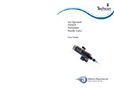 2. UNPACKING AND INSPECTION Carefully unpack the valve and examine the items contained in the carton. These will include: • Valve Assembly • Valve bracket and air hose • Sample tip kit and fluid line • User guide 3. DESCRIPTION The TS5420 Needle Valve is designed to dispense low to medium viscosity material with very precise deposits over a wide range of shot and bead sizes, down to a fraction of a micro liter. An internal spring return makes the valve fully adaptable for use with Techcon Systems time/pressure controllers. A short opening stroke provides extremely fast, positive shut-off. An external stroke control adjustment makes it easy for the operator to fine tune shot sizes. The TS5420’s compact design allows for mounting flexibility and easy integration into automated applications. 4. THEORY OF OPERATION The TS5420 Needle Valve is a normally closed, adjustable opening, needle and seat valve. Inlet air pressure through port (1) retracts the needle assembly (2) from the seat (3) allowing fluid to flow from the valve fluid inlet (4) to the Luer lock outlet (5). Relieving the input air pressure allows the spring (6) to return the needle back to its position to close the material path.