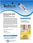 The TS941 Series Spool Valve is based on a balanced spool design, to create a fast “ON/OFF” fluid dispensing function that is not affected by fluid input pressure. The spool action displaces a portion of the fluid back into the nozzle during shut off. This creates an automatic “suck-back” anti-drip feature. An oil chamber is provided for use above the upper seal to create an additional liquid seal that will prevent moisture from being carried onto the spool. The design facilitates easy maintenance without the need for special tools. The valve is designed to be opened by air pressure and closed by a return spring (single acting). A port is provided so that the valve may be connected for air closing without the spring (double acting). The TS941 Series side ports can be rotated to provide conveniently located valve connections. The hardened spool slides in high quality seals and is suitable for use with fluids having a viscosity of up to 3,000,000 cps at pressures of up to 2,500 psi (172.4bar). Product Data Sheet TS941 Series High Pressure Spool Valve