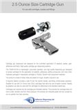 Part ID: TS950-25-HA Pneumatic Gun Construction: Steel/ Aluminium/ Nylon Colour: Silver Attachment: Bayonet Retainer to Handle Weight: 750 g Warranty: 1 Year Description 918-030-000 2.5oz (75ml) Retainer Body 918-031-000 6oz (177ml) Retainer Body 918-034=000 8oz (237ml) Retainer Body 918-032-000 12oz (355ml) Retainer Body Plastic Cartridges Part code Size Description TS25C 2.5oz (75ml) HPDE Cartridge TS60C 6oz (177ml) HPDE Cartridge TS80C 8oz (237ml) HPDE Cartridge TS120C 12oz (355ml) HPDE Cartridge Retainer Sleeves (Interchangeable) Part code Size